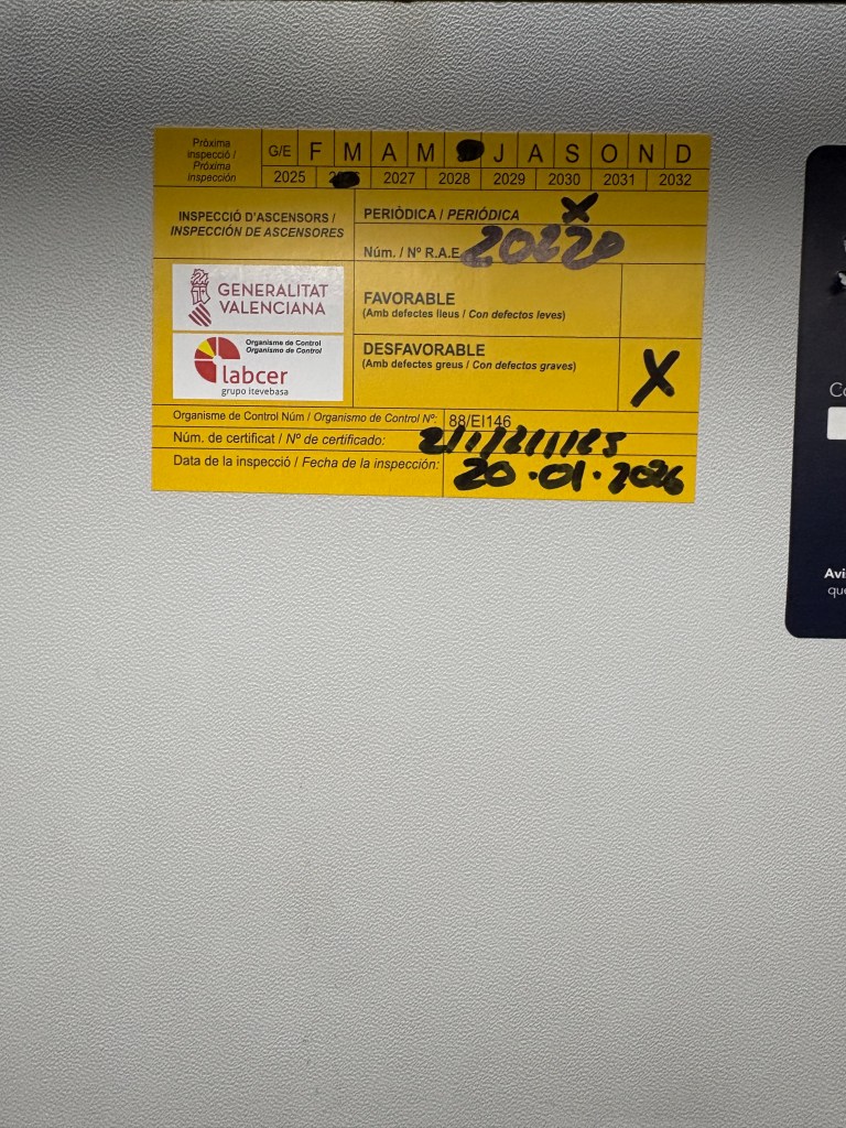 I think Europe is trying to kill me. Death is following me around here––in some small ways and in some bigger ways. If I had been going to Adamuz instead of Orihuela that day, or if I had chosen to go to Crans-Montana over Christmas instead of Chamonix, I might not be here. Every morning when I ride my bike on the side of the Spanish highway in the dark with no shoulder, I think about how all it takes is one driver who is a little less than totally focused to drift a bit to one side and send me flying into the ditch that will double as my grave. The elevator in my apartment building was just inspected and now there’s a sign posted above the buttons that say: desfavorable – con defectos graves. So I suppose at any moment I could fall 6 six stories.